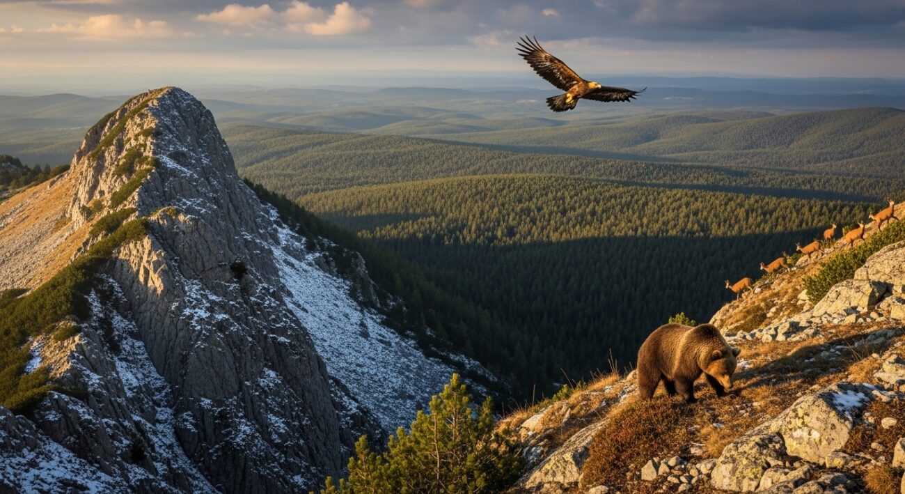 • Karpaty Rumuńskie: Dom Niedźwiedzi, Wilków i Rysi – rumuńskie Karpaty szczycą się jedną z największych populacji niedźwiedzi brunatnych w Europie. Spotkać tu można również wilki (największa populacja w Europie, około 2,3–2,7 tysiąca osobników) i rysie. Parki Narodowe takie jak Rodnei, Retezat czy Bucegi oferują malownicze krajobrazy i doskonałe warunki do obserwacji tych drapieżników.