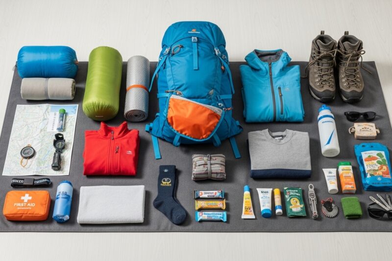 • Akcesoria: Plecak (ok. 20-30 litrów na jednodniowe wycieczki), okulary przeciwsłoneczne z filtrem UV, krem z wysokim filtrem UV (słońce w górach jest intensywniejsze!), czapka, rękawiczki, bidon na wodę, podstawowa apteczka.